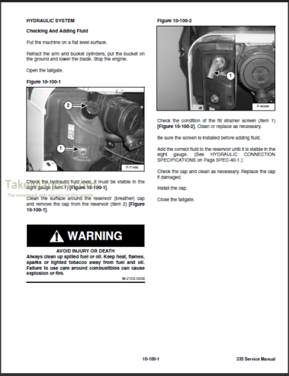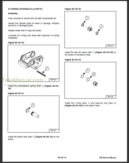Repair Manual For Bobcat 335 Compact Excavator. Illustrations, instructions, diagrams for step by step remove and install, assembly and disassembly, service, maintenance, inspection, repair, troubleshooting, tune-ups.