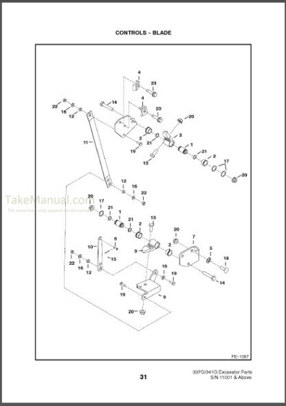 Factory Parts Catalog and Equipment Components For Bobcat 337,341 G Series Excavator. Detailed Illustrations and Parts Lists.