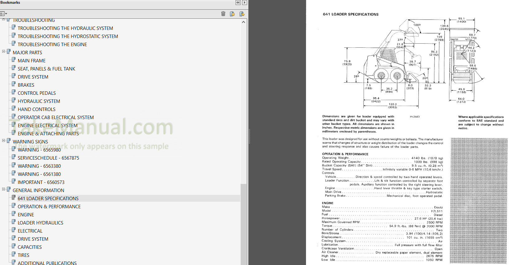 Bobcat 641 Operators Manual Skid Steer Loader 13209-