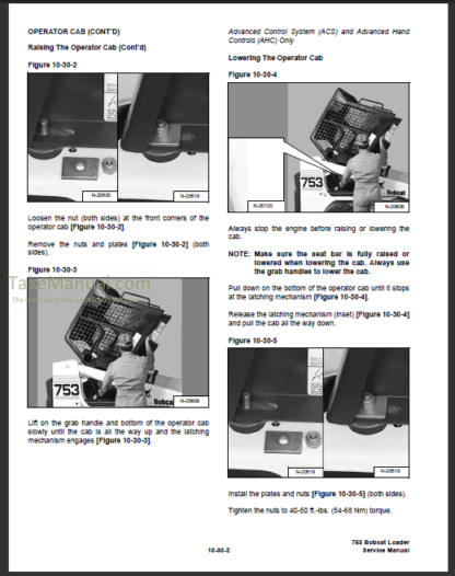 Repair Manual For Bobcat 753 Skid Steer Loader. Illustrations, instructions, diagrams for step by step remove and install, assembly and disassembly, service, maintenance, inspection, repair, troubleshooting, tune-up.