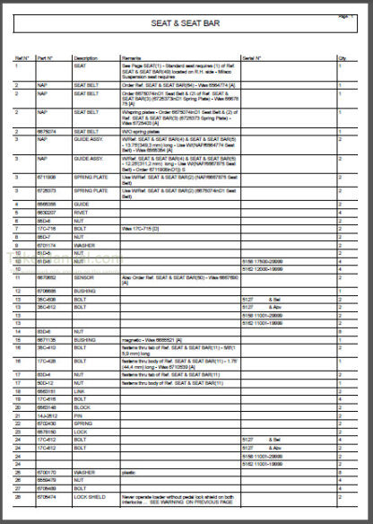 Factory Parts Catalog and Equipment Components For Bobcat 753 BICS & F Skid Steer Loader. Detailed Illustrations and Parts Lists.