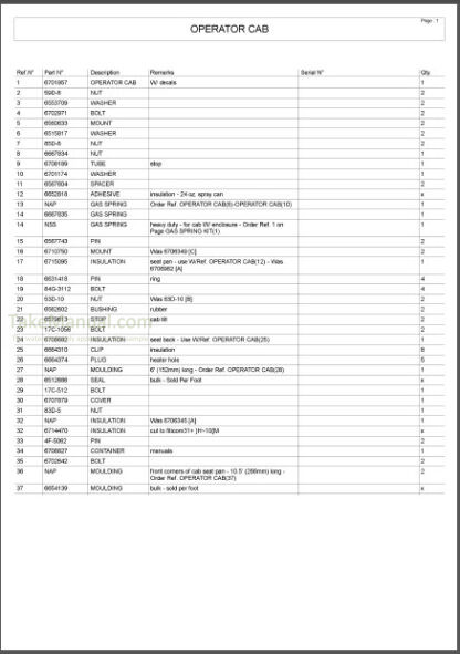 Factory Parts Catalog and Equipment Components For Bobcat 873 Skid Steer Loader. Detailed Illustrations and Parts Lists.