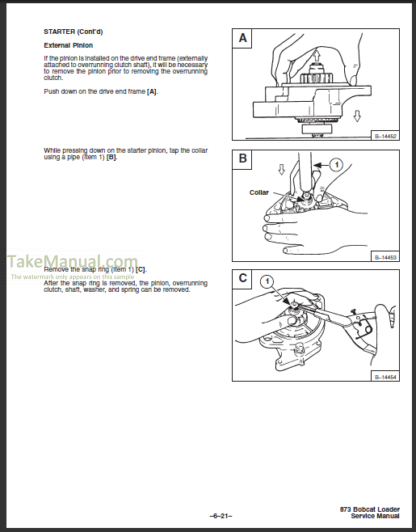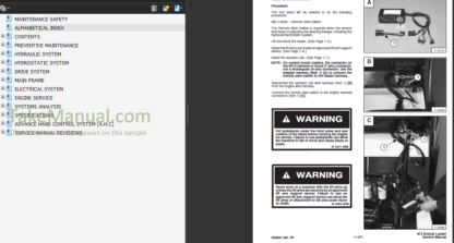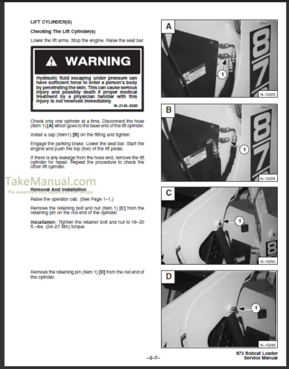 Repair Manual For Bobcat 873 Skid Steer Loader. Illustrations, instructions, diagrams for step by step remove and install, assembly and disassembly, service, maintenance, inspection, repair, troubleshooting, tune-up.