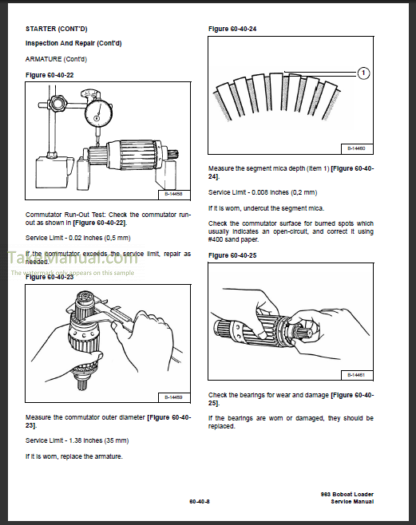 Repair Manual For Bobcat 963 Skid Steer Loader. Illustrations, instructions, diagrams for step by step remove and install, assembly and disassembly, service, maintenance, inspection, repair, troubleshooting, tune-up.