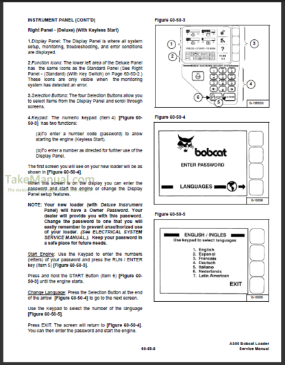 Repair Manual For Bobcat A300 Skid Steer Loader. Illustrations, instructions, diagrams for step by step remove and install, assembly and disassembly, service, maintenance, inspection, repair, troubleshooting, tune-up.