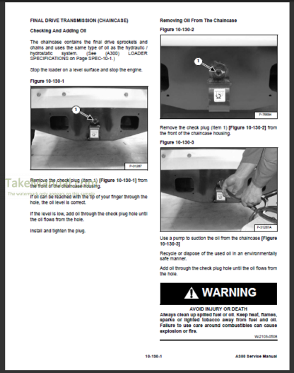 Repair Manual For Bobcat A300 Skid Steer Loader. Illustrations, instructions, diagrams for step by step remove and install, assembly and disassembly, service, maintenance, inspection, repair, troubleshooting, tune-up.