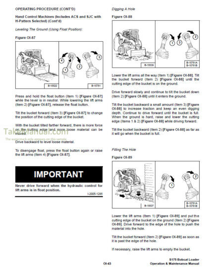 Factory Operation & Maintenance Manual For Bobcat Skid Steer Laoder. Manual For Owners And Operators. It Contains Important Information And Instructions For Maintenance Description Of The Functions And Capabilities Of The System. Description Of Possible Faults / Problems And Their Solution.