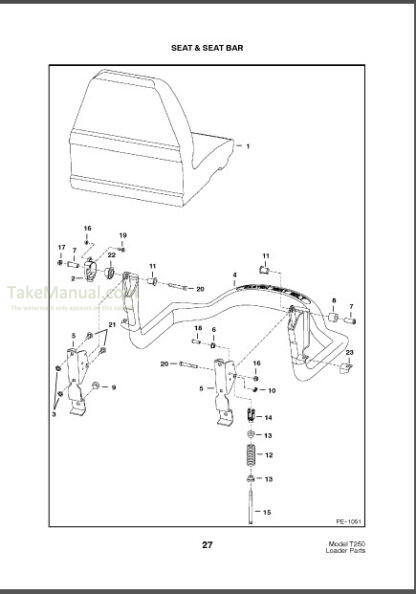 Factory Parts Catalog and Equipment Components For Bobcat T250 Turbo Skid Steer Loader. Detailed Illustrations and Parts Lists.