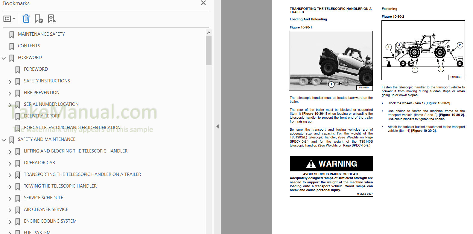 Factory Service Manual For Bobcat Telescopic Handler. Manual Contains Illustrations, Instructions, Diagrams For Step By Step Remove And Install, Assembly And Disassembly, Service, Inspection, Repair, Troubleshooting, Tune-Ups.