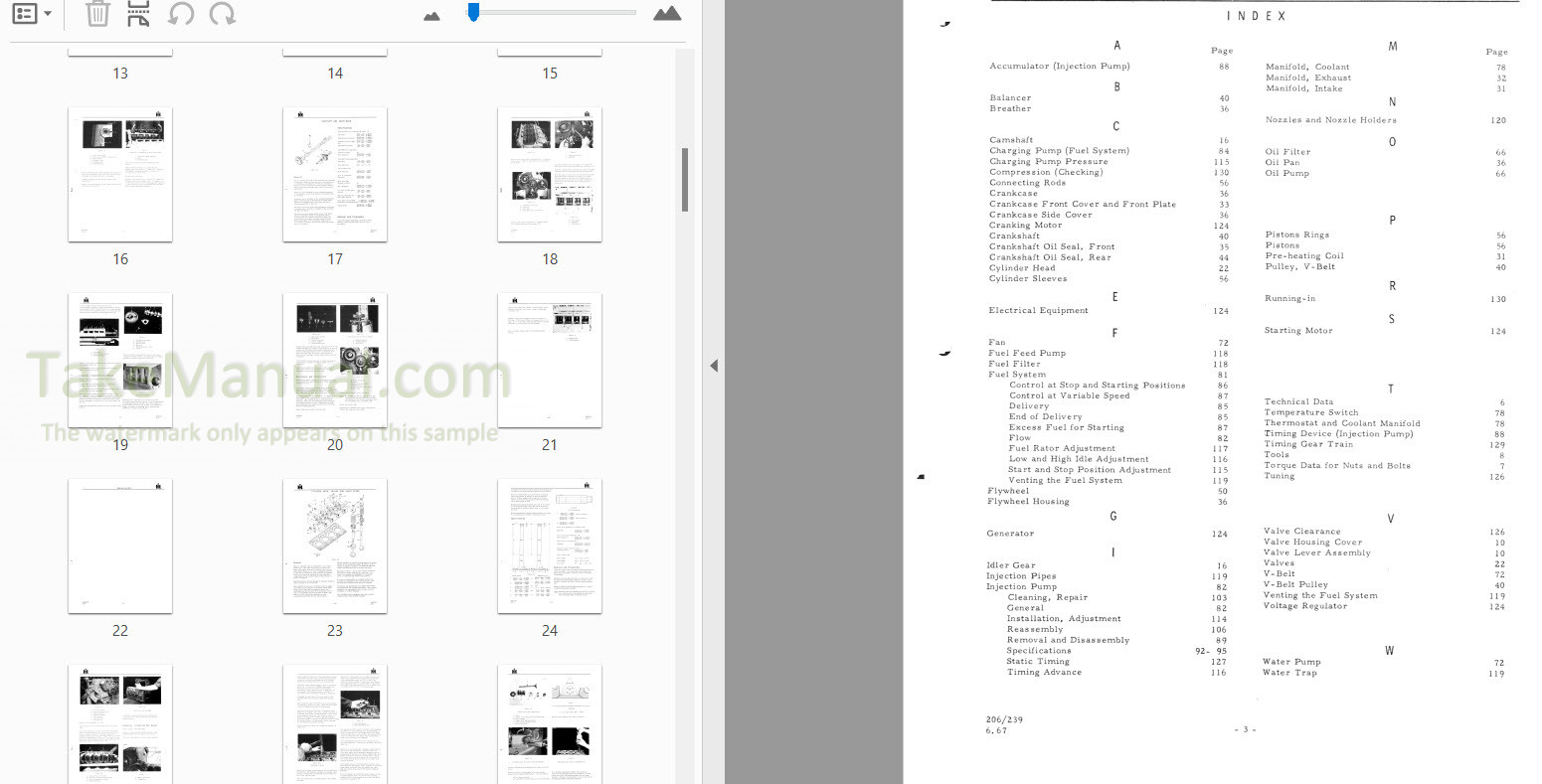 The Factory Service Manual for the diesel engine. Includes detailed illustrations, instructions, and diagrams that facilitate step-by-step processes for the removal and installation, assembly and disassembly, servicing, inspection, repair, troubleshooting, tune-ups.