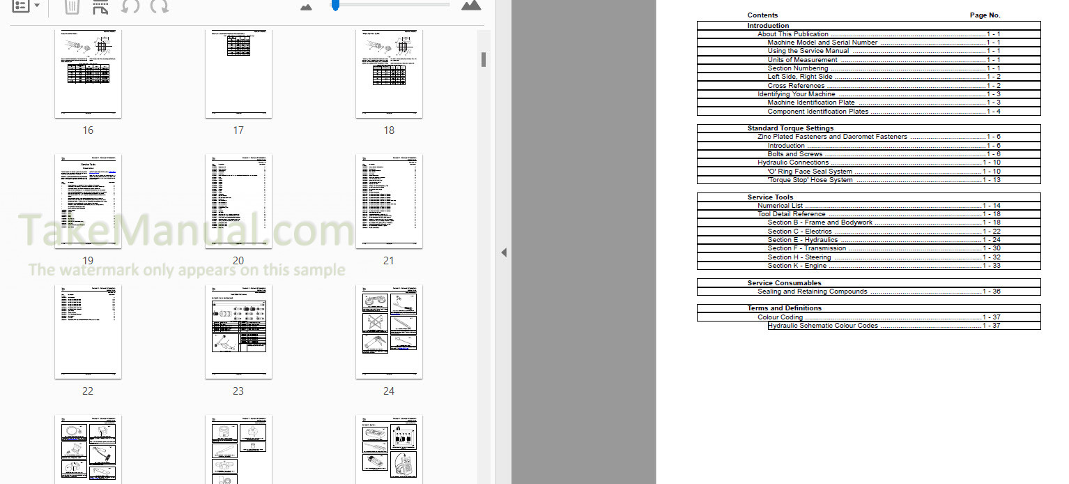 The Factory Service Manual for the telescopic handler. Includes detailed illustrations, instructions, and diagrams that facilitate step-by-step processes for the removal and installation, assembly and disassembly, servicing, inspection, repair, troubleshooting, tune-ups.