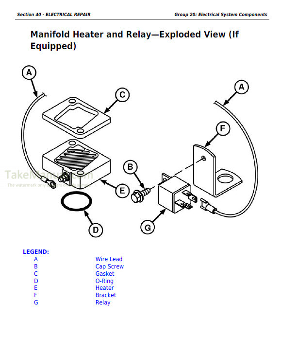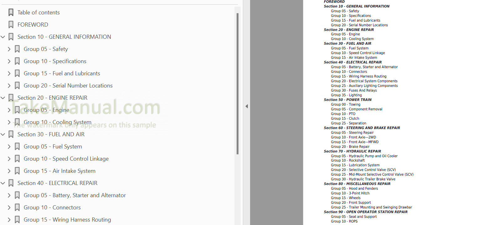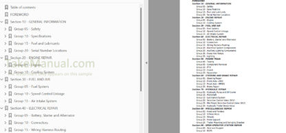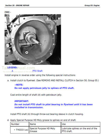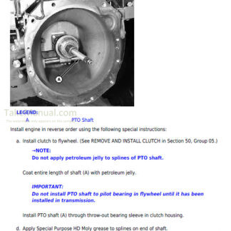 The Factory Repair Manual for the John Deere tractor. Includes detailed illustrations, instructions, and diagrams that facilitate step-by-step processes for the removal and installation, assembly and disassembly, servicing, inspection, repair, troubleshooting, tune-ups.
